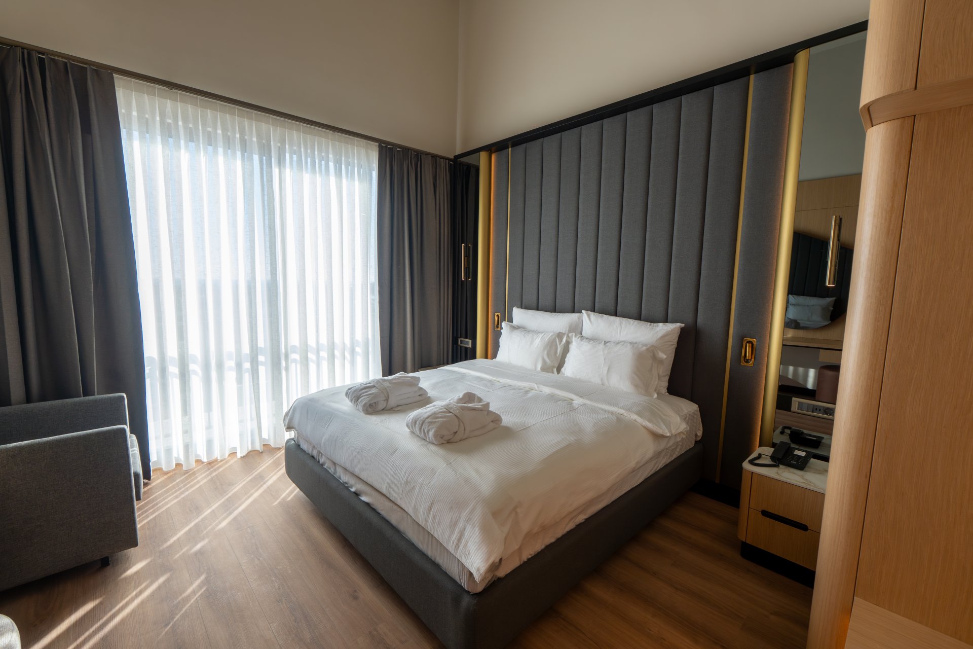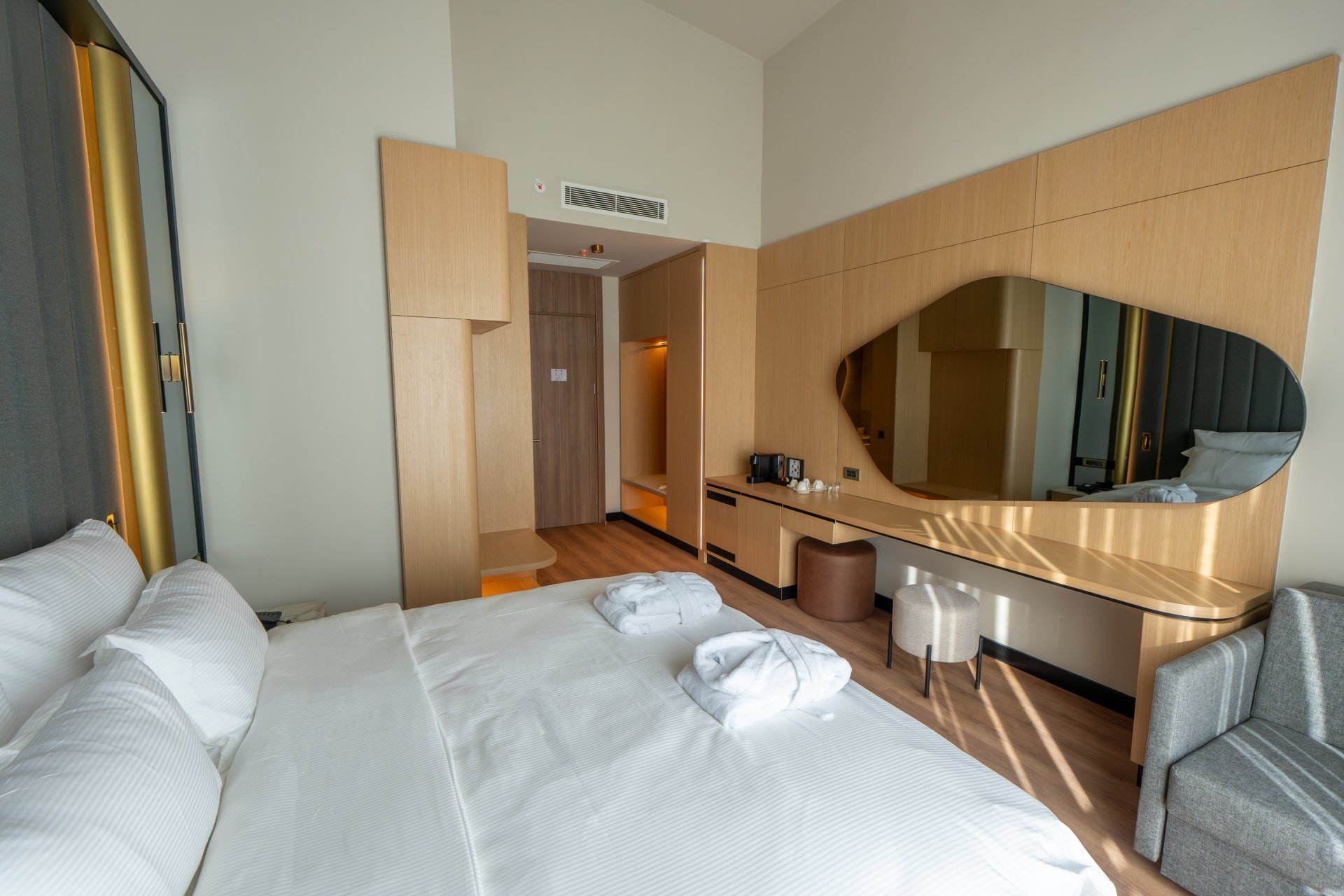 Our Junior Suite rooms offer an exclusive experience with their spacious living area and elegant details. With a quiet atmosphere, modern decoration, and the comfort of a double bed, they provide a prestigious environment for both business and leisure stays.