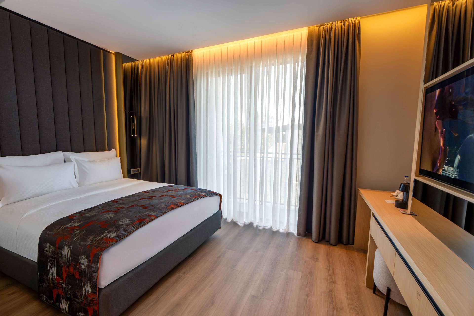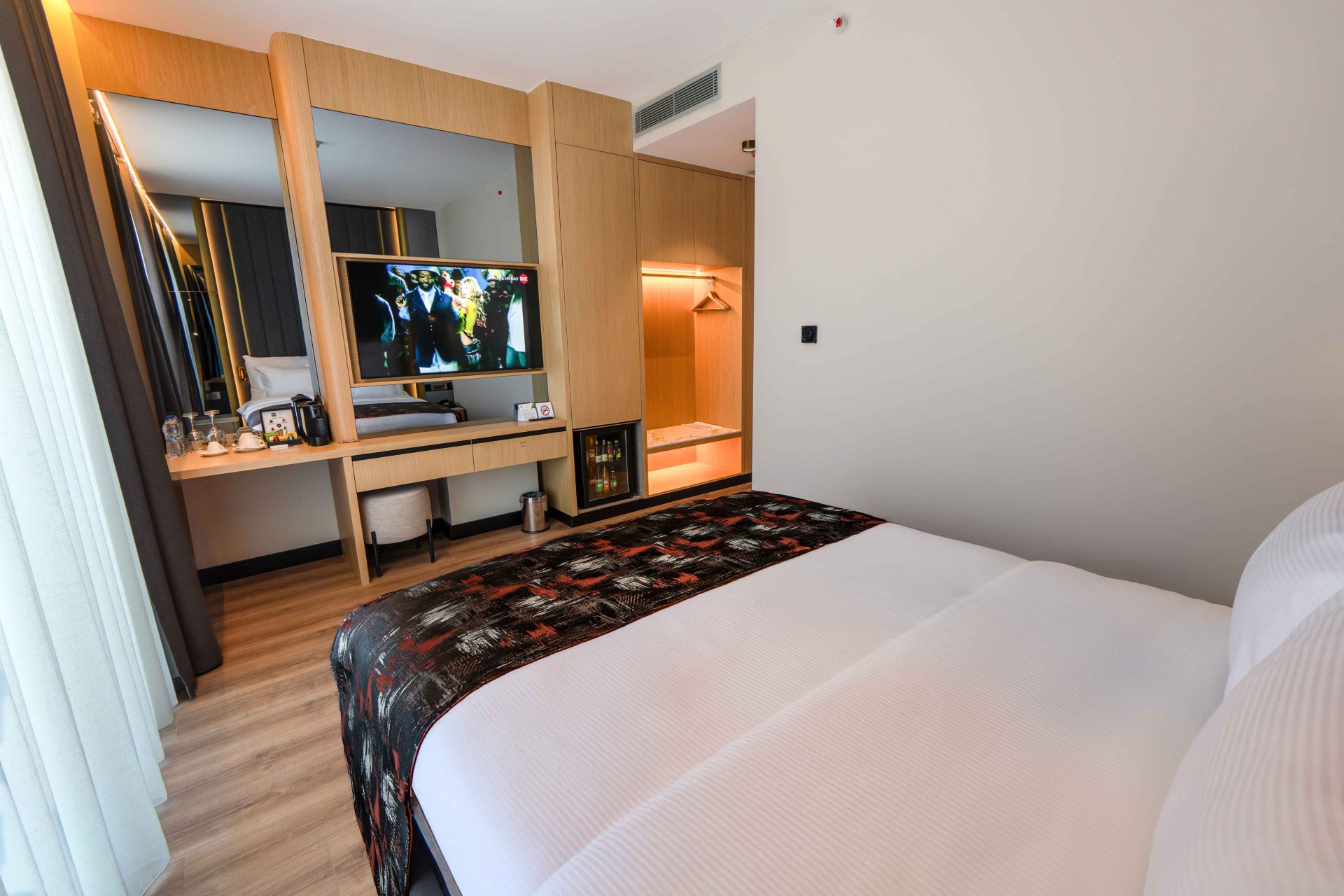 Our Standard Rooms combine modern elegance and comfort, offering guests a peaceful stay with their warm atmosphere and carefully designed decoration. With comfortable bed options, guests can choose either a double bed or two separate single beds. It is an elegant and comfortable retreat for guests who wish to relax without moving away from the energy of the city.