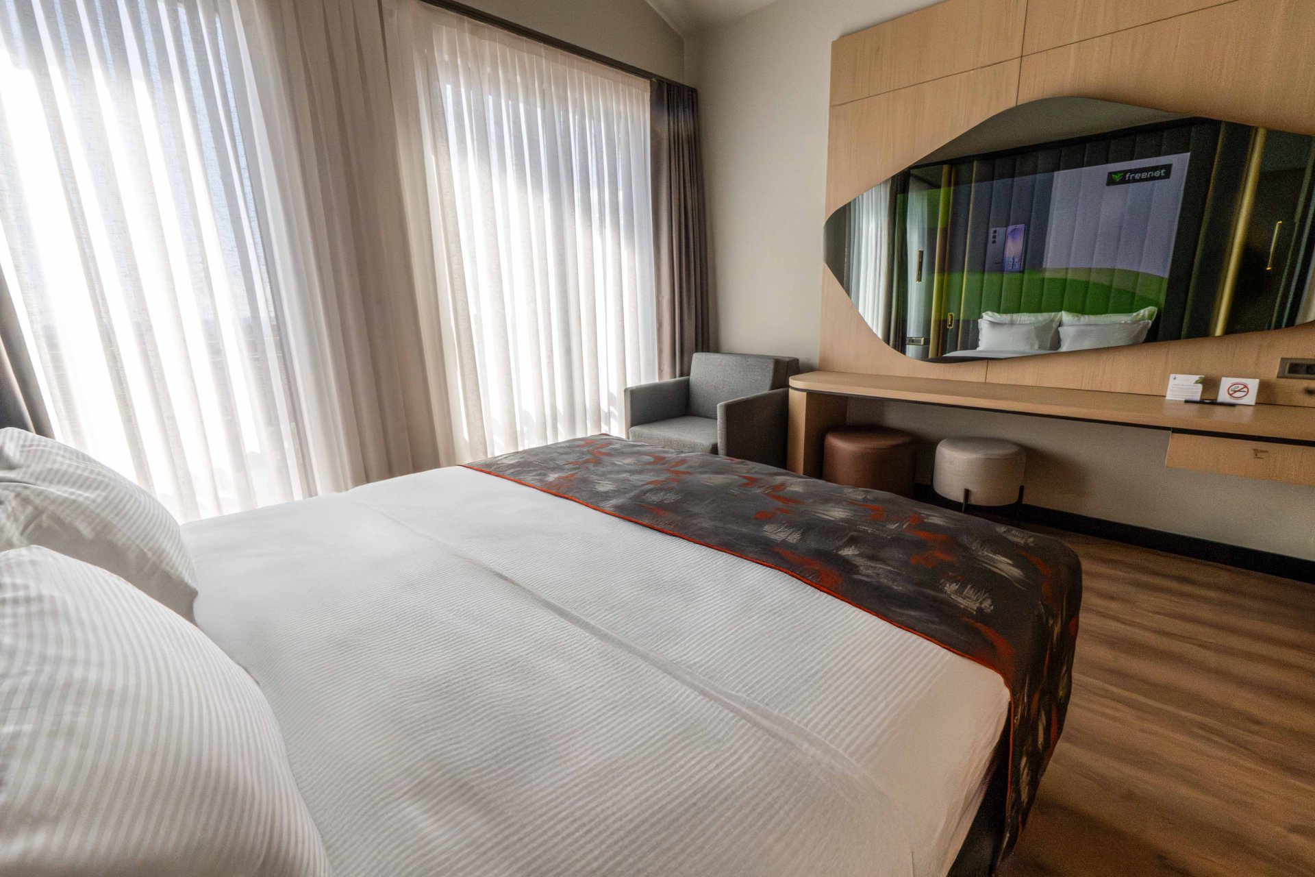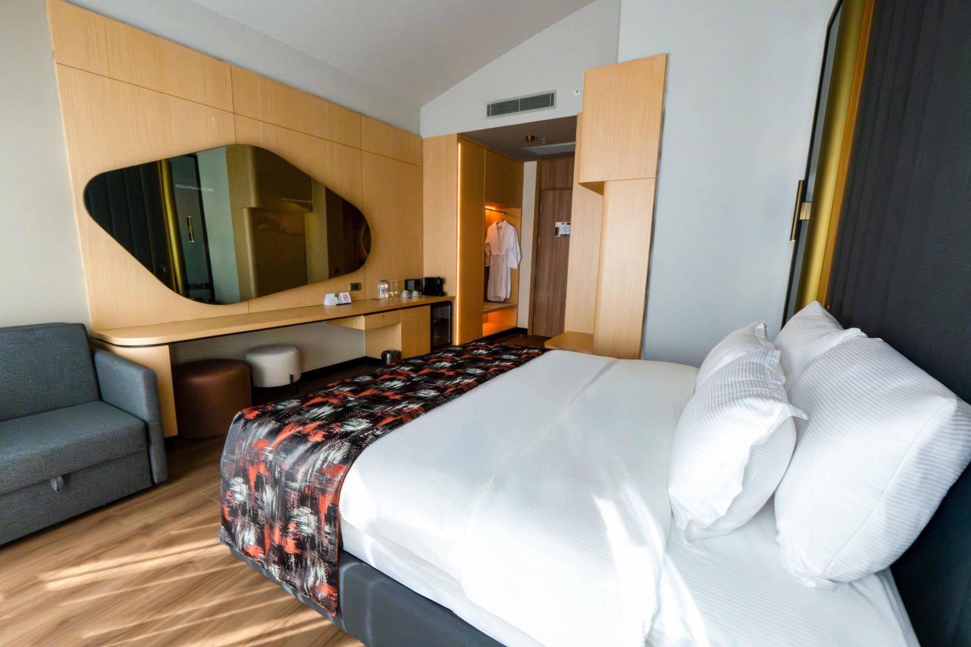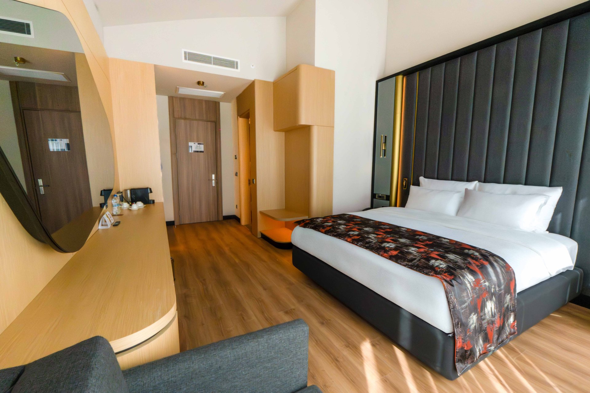 Junior Suite odalarımız, geniş yaşam alanı ve zarif detaylarıyla ayrıcalıklı bir deneyim sunar. Sessiz atmosfer, modern dekorasyon ve çift kişilik yatak konforu sayesinde hem iş hem tatil amaçlı konaklamalarda misafirlerimize prestijli bir ortam sağlar.