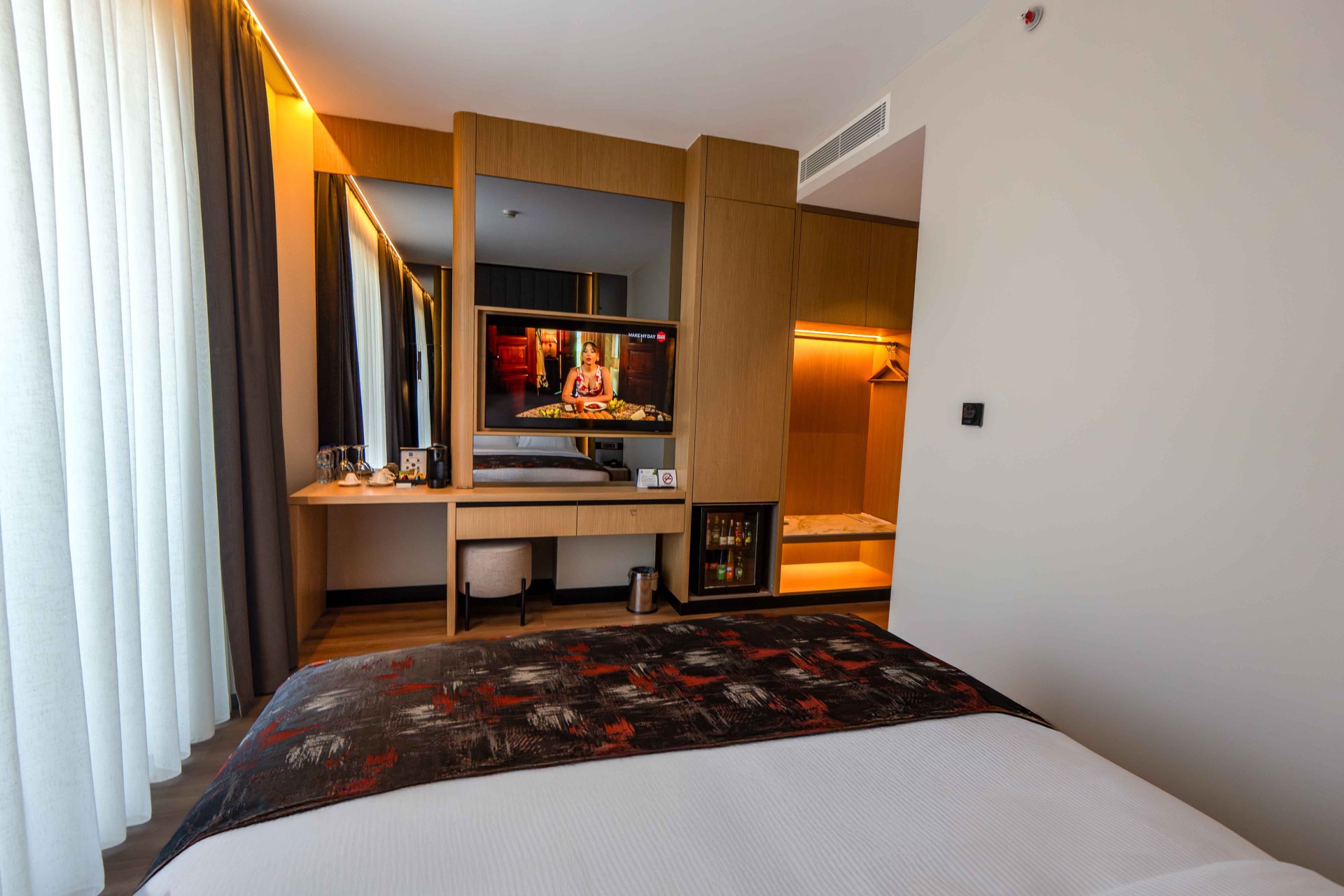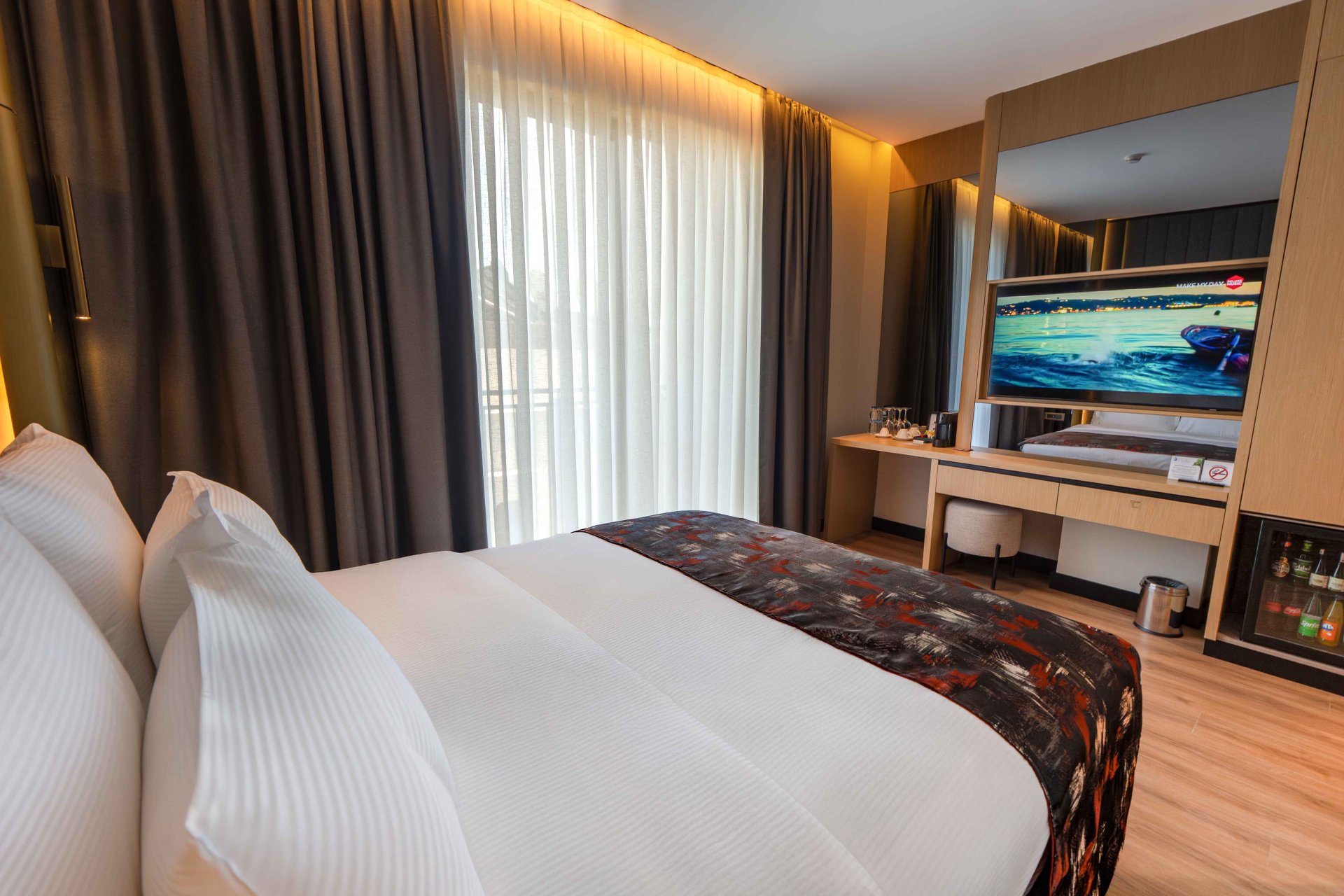 Modern şıklık ve rahatlığı bir araya getiren Standart odalarımız, sıcak atmosferi ve özenle tasarlanmış dekorasyonuyla misafirlerine huzurlu bir konaklama sunar. Konforu ön planda tutan yatak seçenekleriyle ister çift kişilik ister iki ayrı tek kişilik yatak tercih edilebilir. Şehrin enerjisinden uzaklaşmadan dinlenmek isteyen misafirler için zarif ve konforlu bir kaçış noktasıdır.