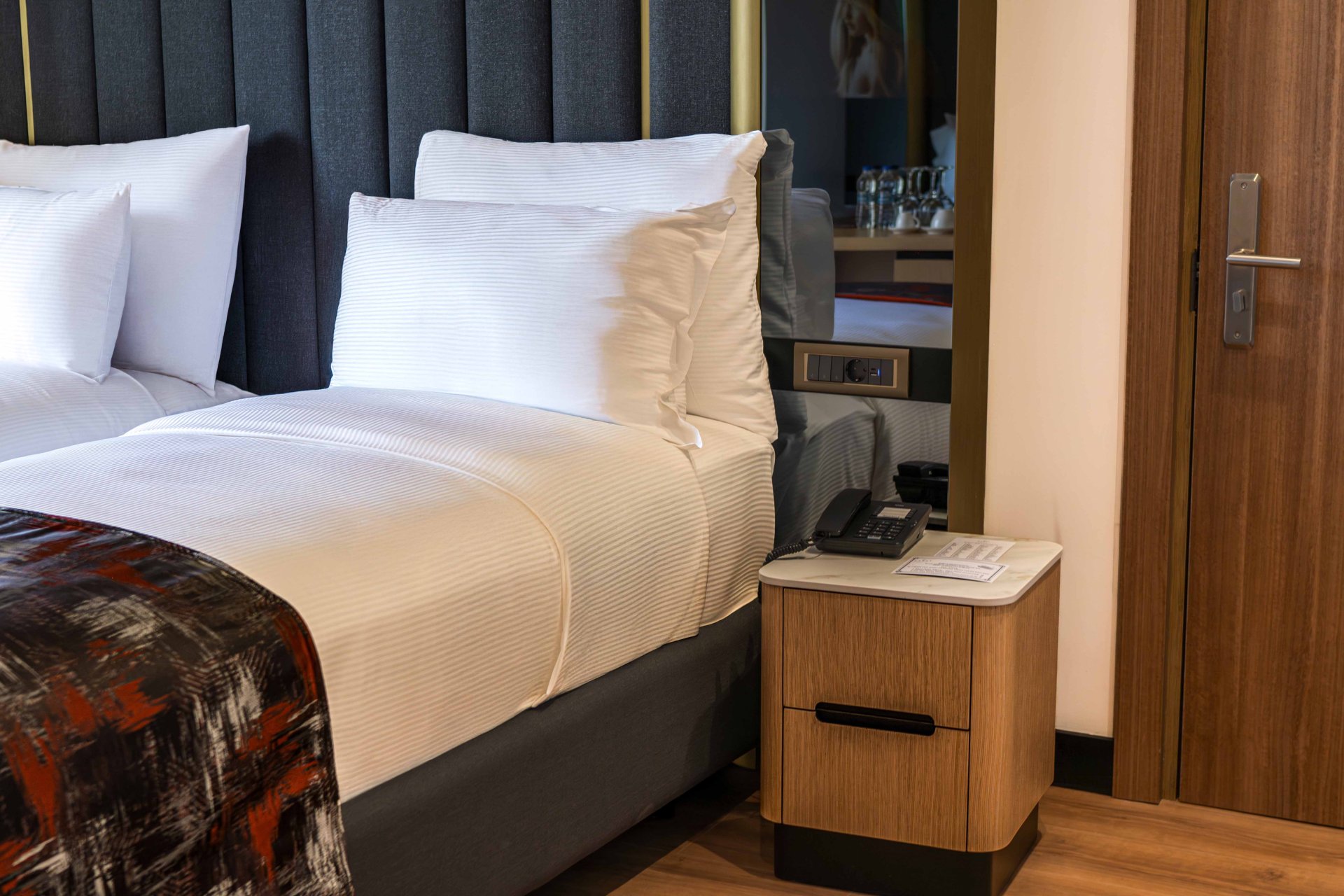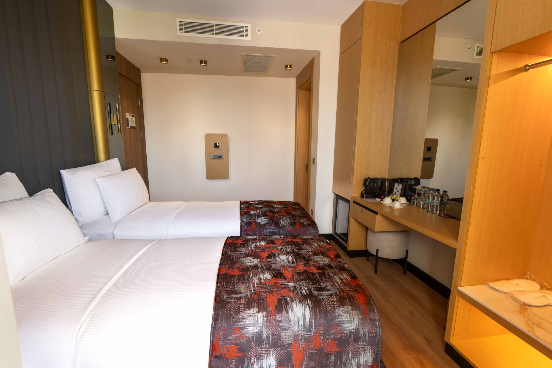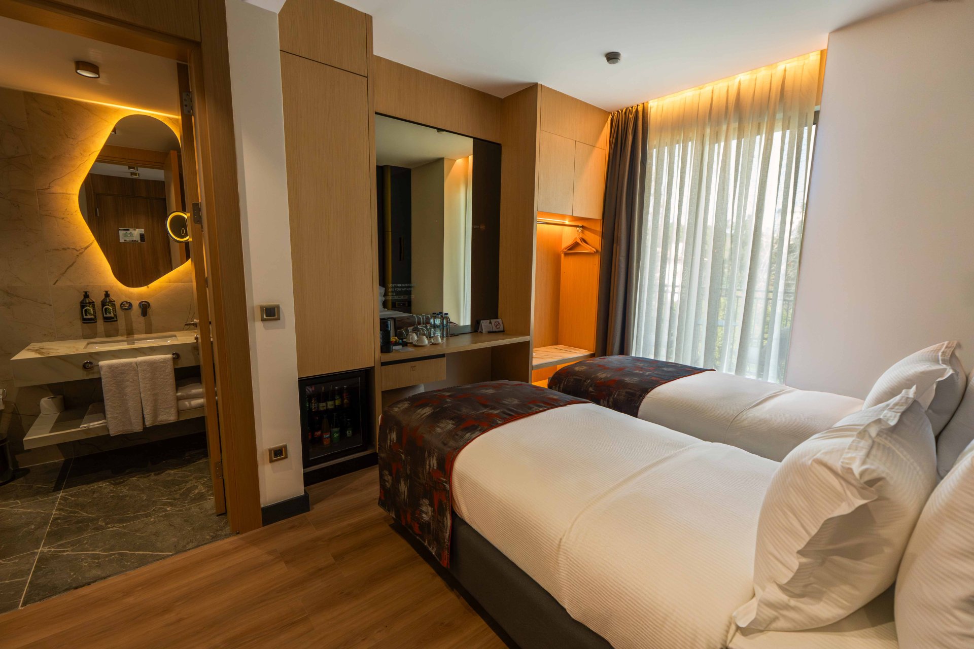 Наши стандартные номера сочетают современную элегантность и комфорт, предлагая гостям спокойное проживание благодаря уютной атмосфере и тщательно продуманному интерьеру. Гости могут выбрать одну двуспальную кровать или две отдельные односпальные кровати. Это элегантное и комфортное место для отдыха для тех, кто хочет расслабиться, не покидая городской ритм.